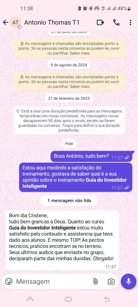 Se por acaso o treinamento não cumpriu com a promessa, basta enviar uma mensagem dentro desses 7 dias e eu devolvo-te 100% do valor investido, comprovado a ineficiência do treinamento.